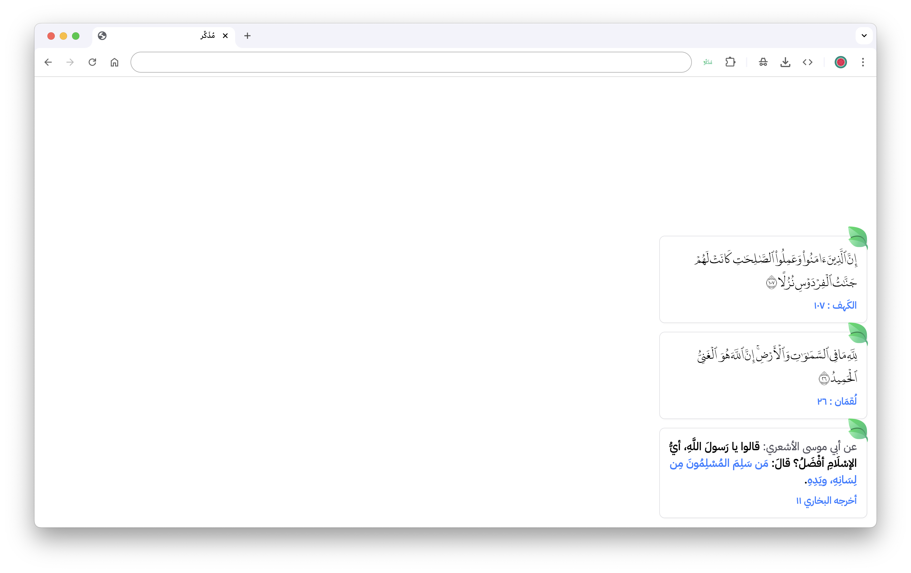 حافظ على وِردٍ يومي من الأذكار والأحاديث والفوائد المختلفة أثناء تصفحك للإنترنت 🌿